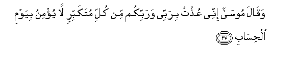 27. Na Musa akasema: Mimi najikinga kwa Mola wangu Mlezi na Mola