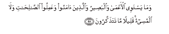 58. Na kipofu na mwenye kuona hawalingani; na walio amini na watendao