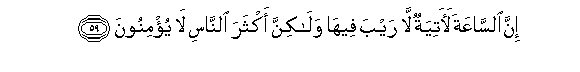 59. Hakika Saa (ya Kiyama) itafika, nayo haina shaka. Lakini watu