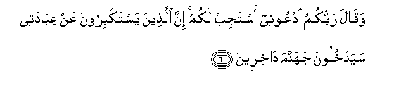 60. Na Mola wenu Mlezi anasema: Niombeni nitakuitikieni. Kwa hakika