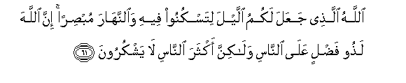 61. Mwenyezi Mungu aliye kufanyieni usiku ili mpate kutulia humo,