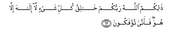62. Huyo ndiye Mwenyezi Mungu Mola wenu Mlezi, Muumba wa kila kitu.