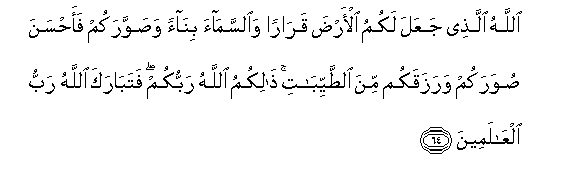64. Ni Mwenyezi Mungu aliye kufanyieni ardhi kuwa ni pahala pa kukaa,