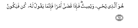 68. Yeye ndiye anaye huisha na anaye fisha. Akihukumu jambo liwe,