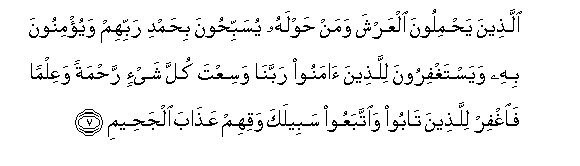 7. Wale wanao beba A'rshi, na wanao izunguka, wanamsabihi na kumhimidi