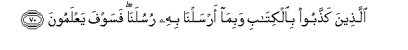 70. Ambao wamekanusha Kitabu na yale tuliyo watuma Mitume wetu. Basi