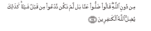 74. Badala ya Mwenyezi Mungu? Watasema: Wametupotea, bali tangu zamani