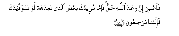 77. Basi subiri, hakika ahadi ya Mwenyezi Mungu ni ya kweli. Na ama