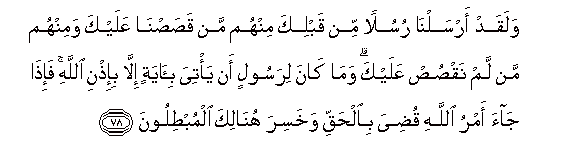 78. Na bila ya shaka tuliwatuma Mitume kabla yako. Wengine katika