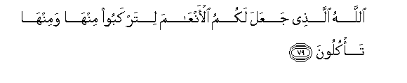 79. Mwenyezi Mungu aliye kujaalieni nyama hoa, mifugo, ili muwapande