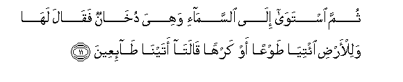 na ardhi: Njooni, kwa khiari au kwa nguvu! Vyote viwili vikasema: Tumekuja