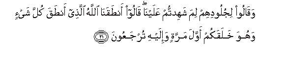 21. Na wao wataziambia ngozi zao: Kwa nini mmetushuhudilia? Nazo