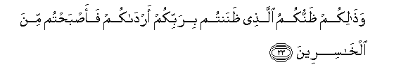 23. Basi hiyo dhana yenu mliyo kuwa mkimdhania Mola wenu Mlezi. Imekuangamizeni;
