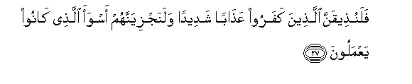 27. Basi hapana shaka tutawaonjesha hao walio kufuru adhabu kali,