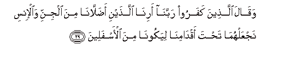 29. Na walio kufuru watasema: Mola wetu Mlezi! Tuonyeshe walio tupoteza