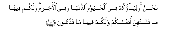 31. Sisi ni vipenzi vyenu katika maisha ya dunia na katika Akhera,