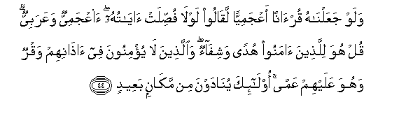 44. Na lau tungeli ifanya Qur'ani kwa lugha ya kigeni wangeli sema: