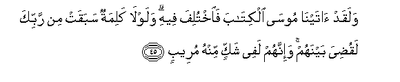 45. Na hakika tulimpa Musa Kitabu, lakini pakatokea khitilafu kati