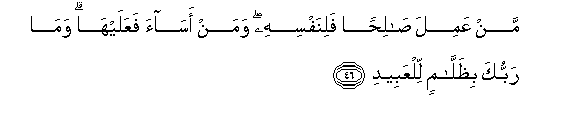 46. Anaye tenda mema basi anajitendea mwenyewe nafsi yake, na mwenye