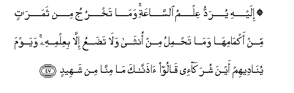 47. UJUZI wa kuijua Saa ya Kiyama unarudishwa kwake tu Mwenyezi Mungu.