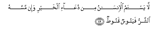 49. Mwanaadamu hachoki kuomba dua za kheri, na inapo mpata shari,