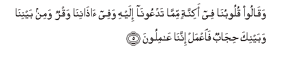 5. Na wakasema: Nyoyo zetu zimo katika vifuniko kwa hayo unayo tuitia,