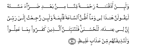 dhara, bila ya shaka husema: Haya nayastahiki mimi, wala sidhani kuwa Kiyama