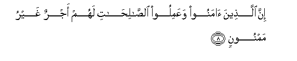 8. Hakika wanao amini na wakatenda mema watakuwa na ujira usio na