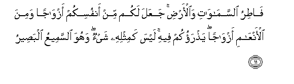 11. Yeye ndiye Muumba mbingu na ardhi, amekujaalieni mke na mume