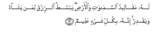 12. Yeye ndiye Mwenye funguo za mbingu na ardhi. Humkunjulia riziki
