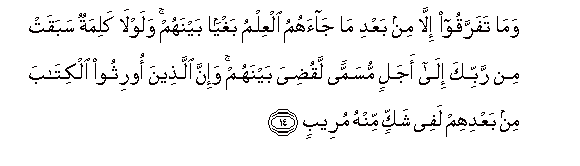 14. Na hawakufarikiana ila baada ya kuwajia ilimu kwa sababu ya husuda