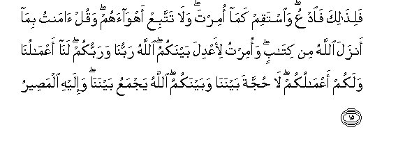 15. Basi kwa haya waite! Nawe simama sawa sawa kama ulivyo amrishwa,