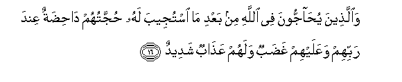 16. Na wanao hojiana juu ya Mwenyezi Mungu baada ya kukubaliwa, hoja