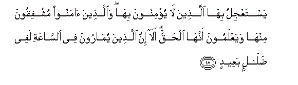 18. Wasio amini huihimiza hiyo Saa ifike upesi; lakini wanao amini