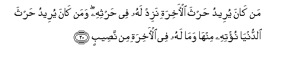 20. Mwenye kutaka mavuno ya Akhera tutamzidishia katika mavuno yake,
