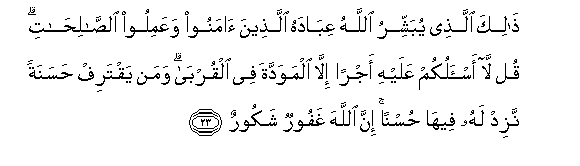 na wakatenda mema. Sema: Sikuombeni malipo yoyote kwenu ila mapenzi katika