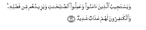 26. Na anawaitikia wanao amini na wakatenda mema, na anawazidishia