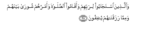 38. Na wanao mwitikia Mola wao Mlezi, na wakashika Sala, na mambo
