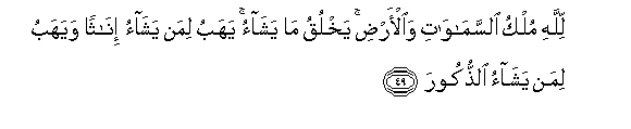49. Ufalme wa mbingu na ardhi ni wa Mwenyezi Mungu; anaumba apendavyo,
