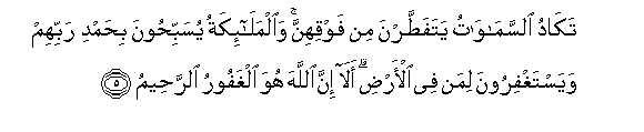 5. Zinakaribia mbingu kupasuka juu huko, na Malaika wakimtakasa Mola