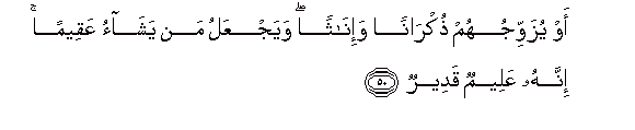 50. Au huwachanganya wanaume na wanawake, na akamfanya amtakaye tasa.