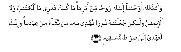 52. Na namna hivi tumekufunulia Qur'ani kwa amri yetu. Ulikuwa hujui