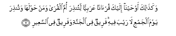 7. Na namna hivi tumekufunulia Qur'ani kwa Kiarabu ili uwaonye watu