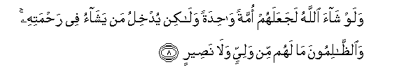 8. Na Mwenyezi Mungu angeli penda ange wafanya wote umma mmoja, lakini