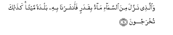 11. Na ambaye ndiye aliye teremsha kutoka mbinguni maji kwa kiasi,