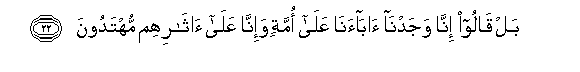 22. Bali wanasema: Hakika sisi tuliwakuta baba zetu wanashika dini