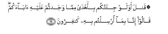 24. Akasema (Mwonyaji): Hata nikikuleteeni yenye uwongofu bora kuliko