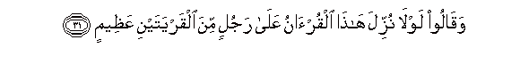 31. Na walisema: Kwa nini Qur'ani hii haikuteremshwa kwa mtu mkubwa