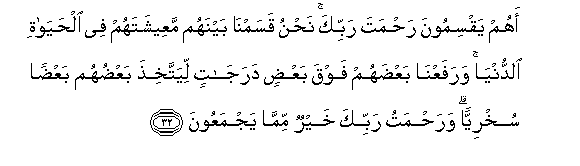 32. Kwani wao ndio wanao gawa rehema za Mola wako Mlezi? Sisi tumewagawanyia