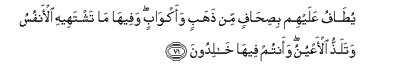 71. Watakuwa wanapitishiwa sahani za dhahabu na vikombe; na vitakuwamo